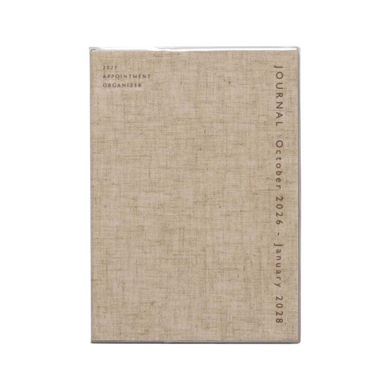 Coton is a beloved classic, featuring a fabric-like texture and a simple yet stylish logo. Since its debut in 2009, this timeless cover design has remained a favorite. The delicate, finely woven fabric insert is wrapped in a clear cover, maintaining its pristine look throughout the year—even for lighter colors. Each cover’s fabric varies, such as linen, offering a unique texture and feel to enjoy.