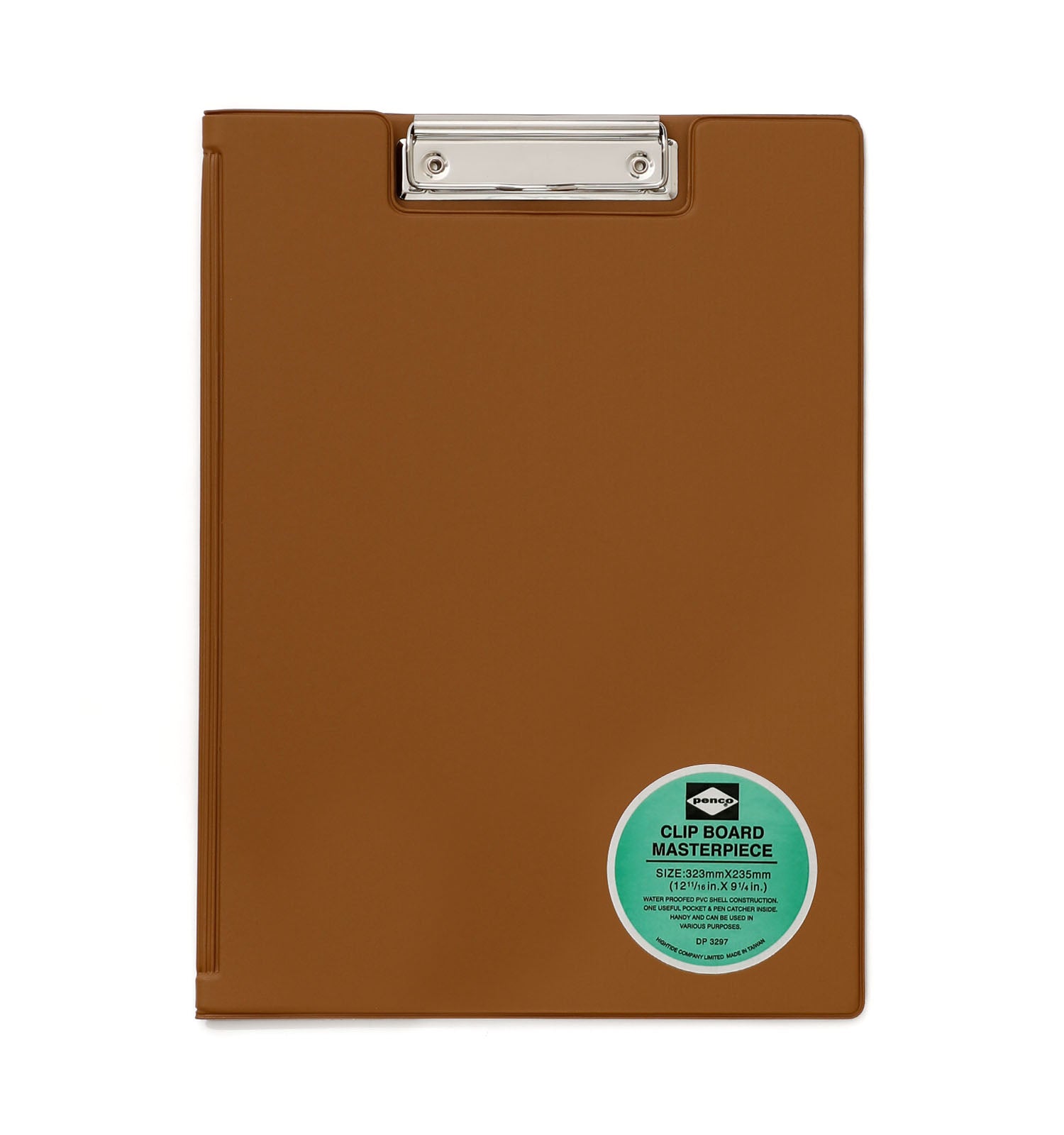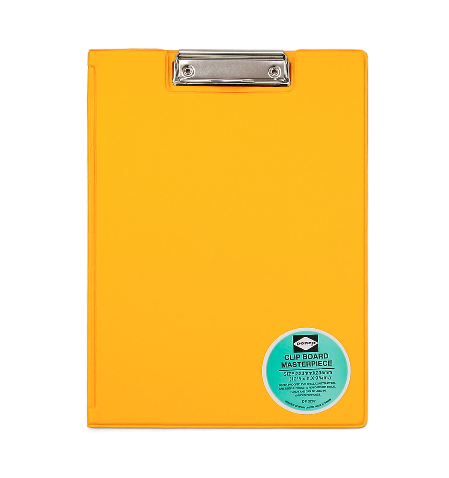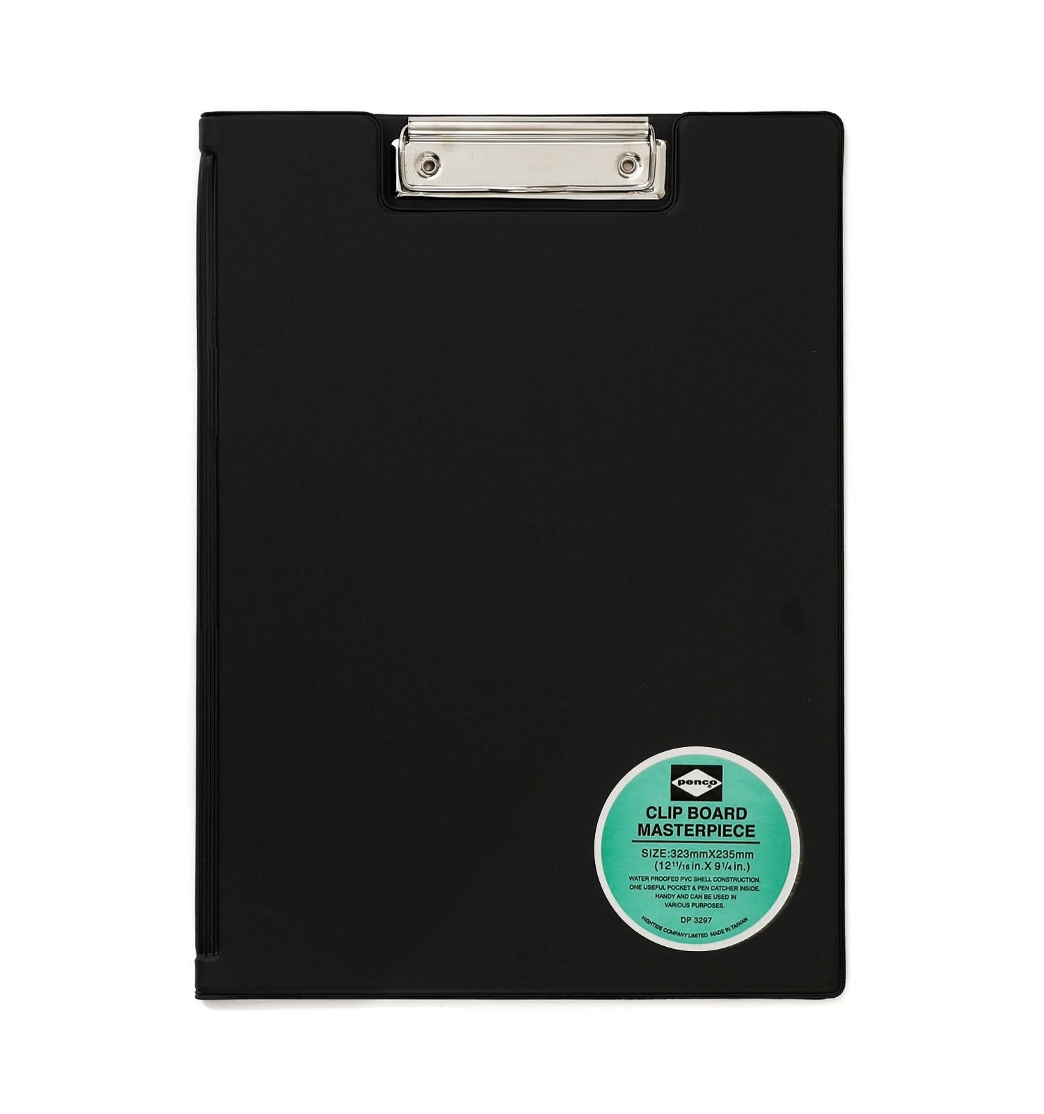 A water-resistant PVC folder with a clip board, inner pocket, and a pen holder by Penco. Also available in A5 size.