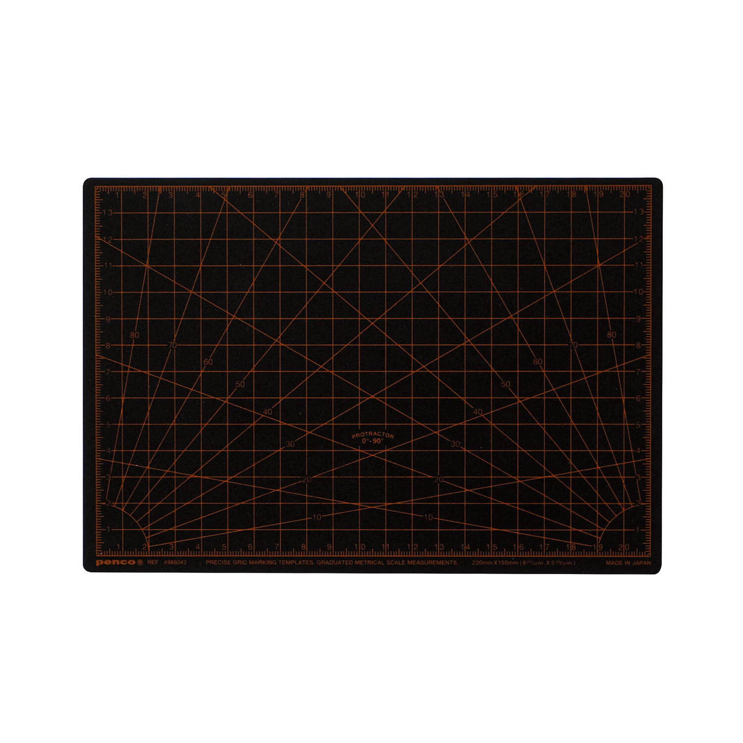 A superior quality 5 layer-construction PVC cutting mat by Penco, developed with a veteran cutting mat maker from Japan. The A5-size cutting board is sturdy, bend or flake-proof, and safely grips the blade as well as paper with its subtly textured surface. The blade mark disappears, absorbed by the soft yet tough PVC surface, where plenty of guidelines are printed.