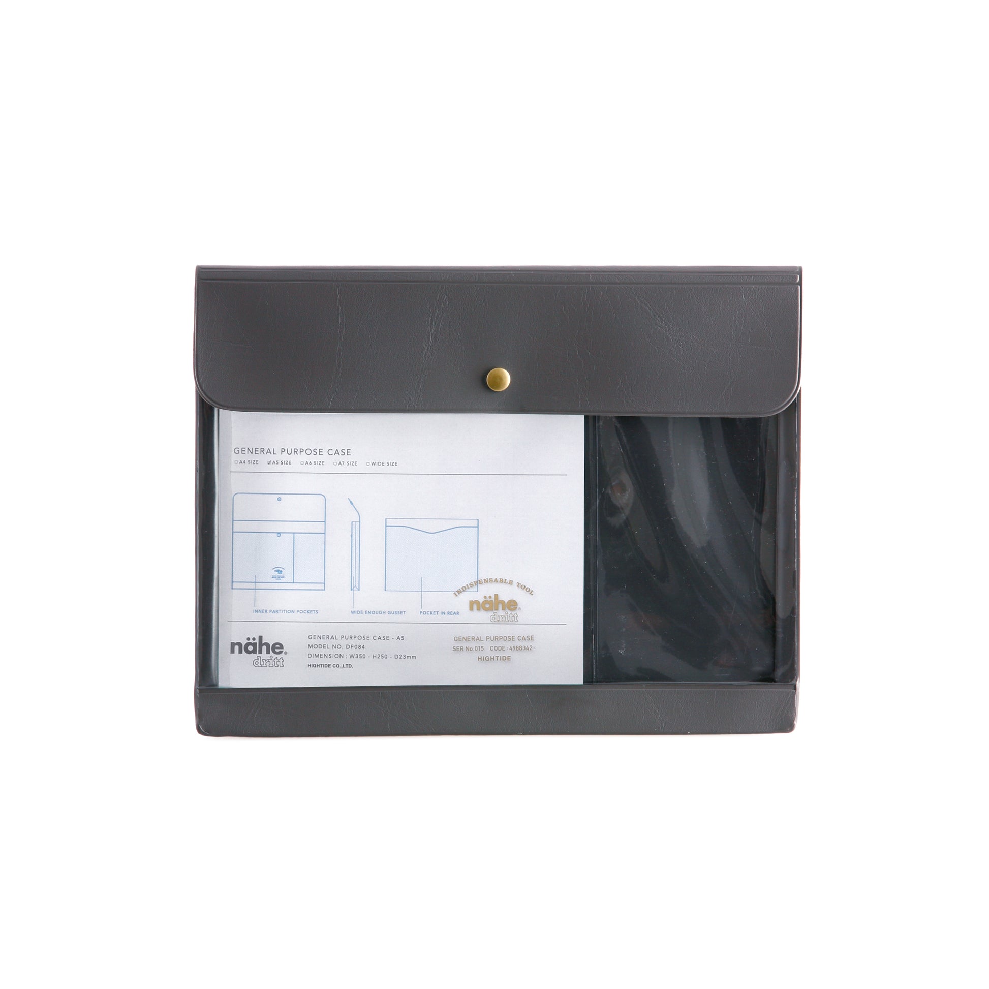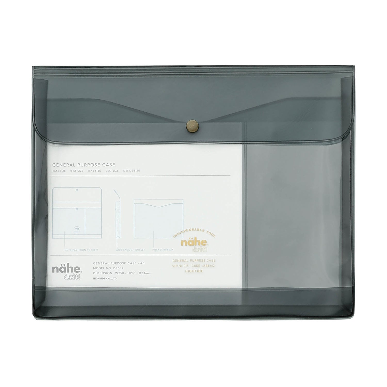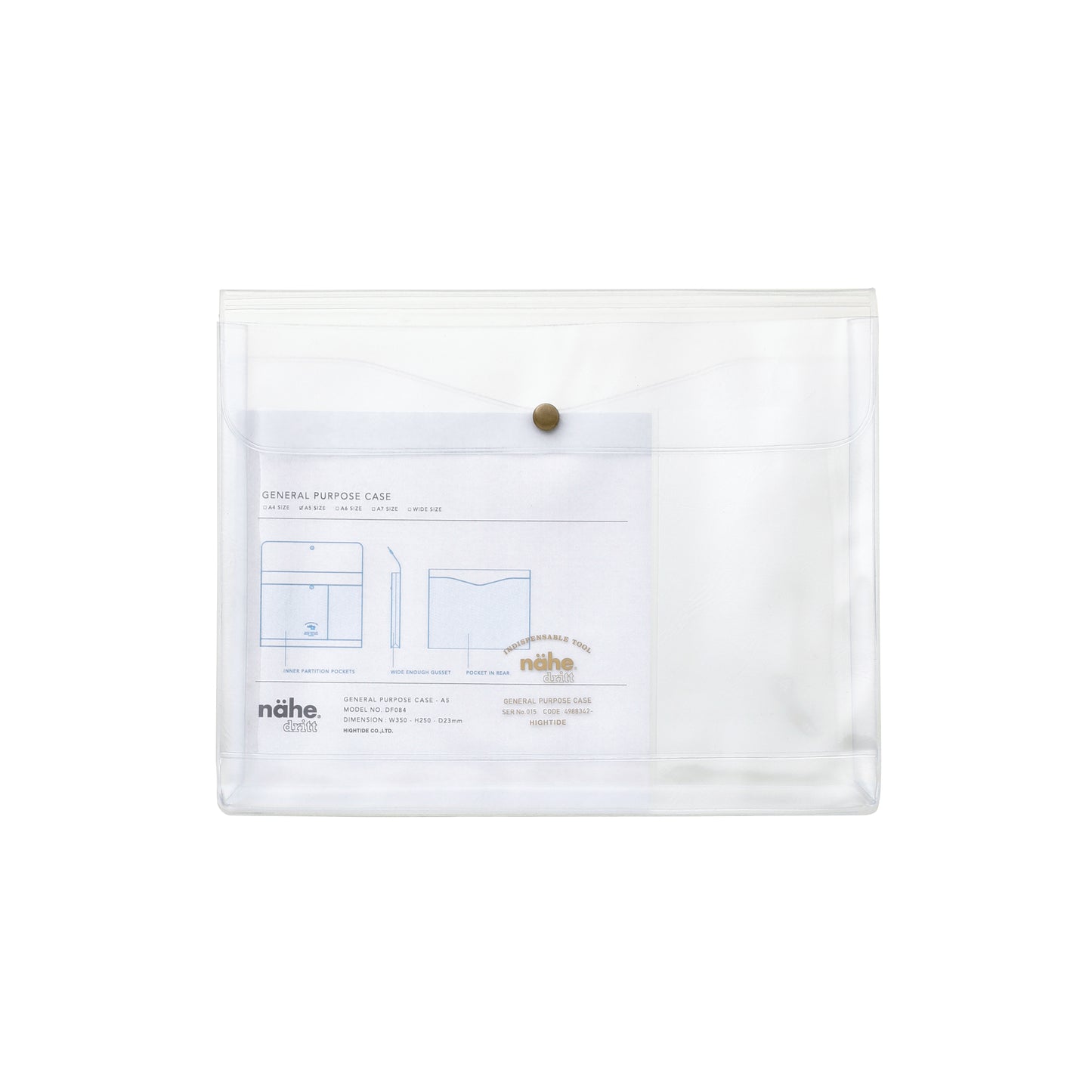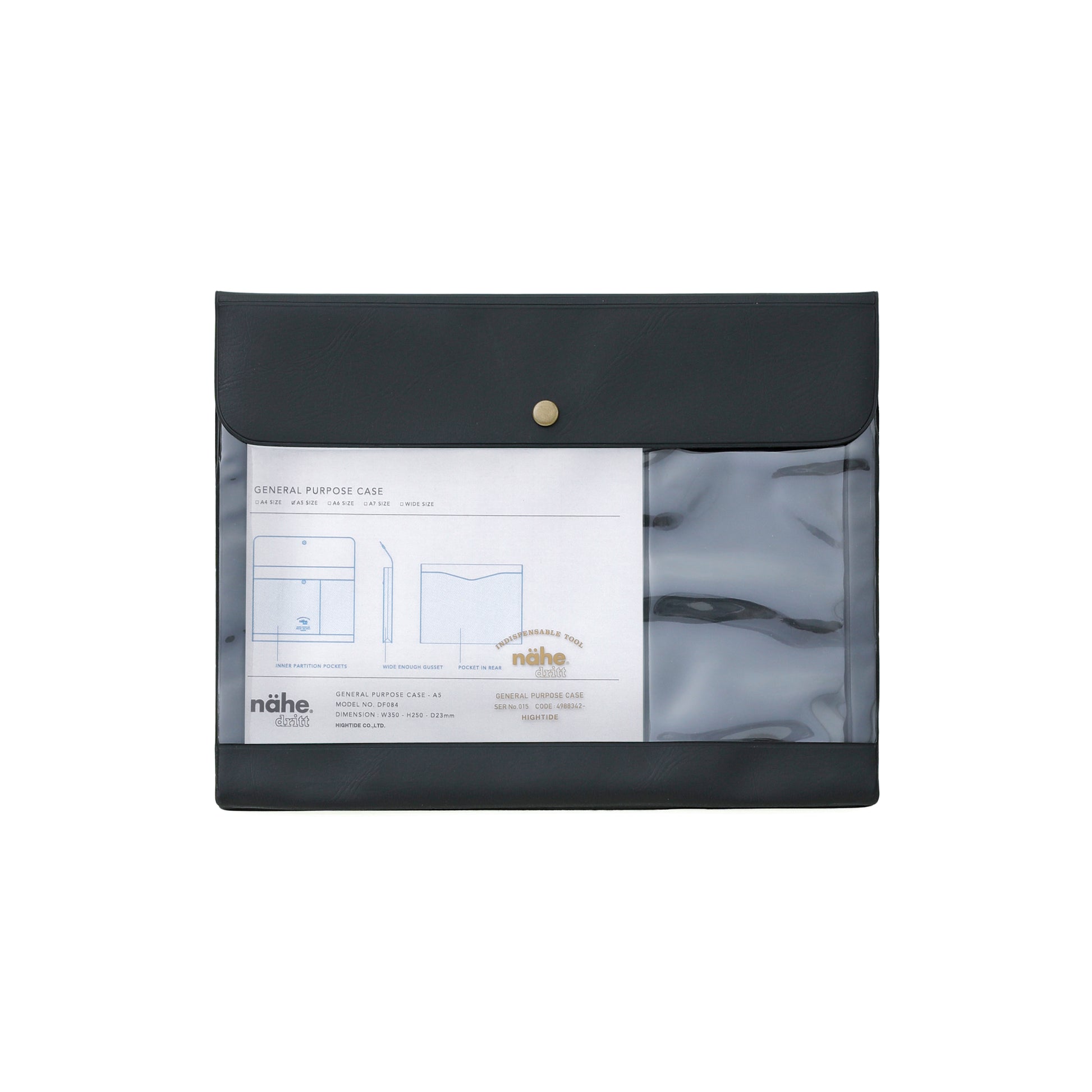 A gusseted general purpose case made of PVC with a transparent front by Hightide.