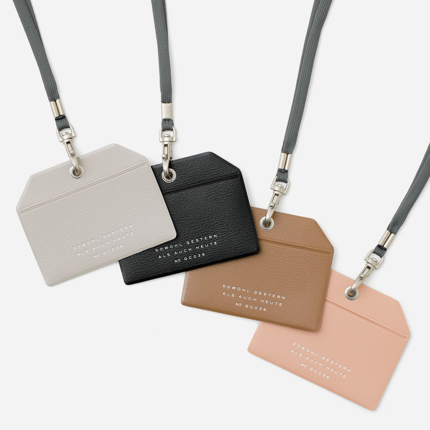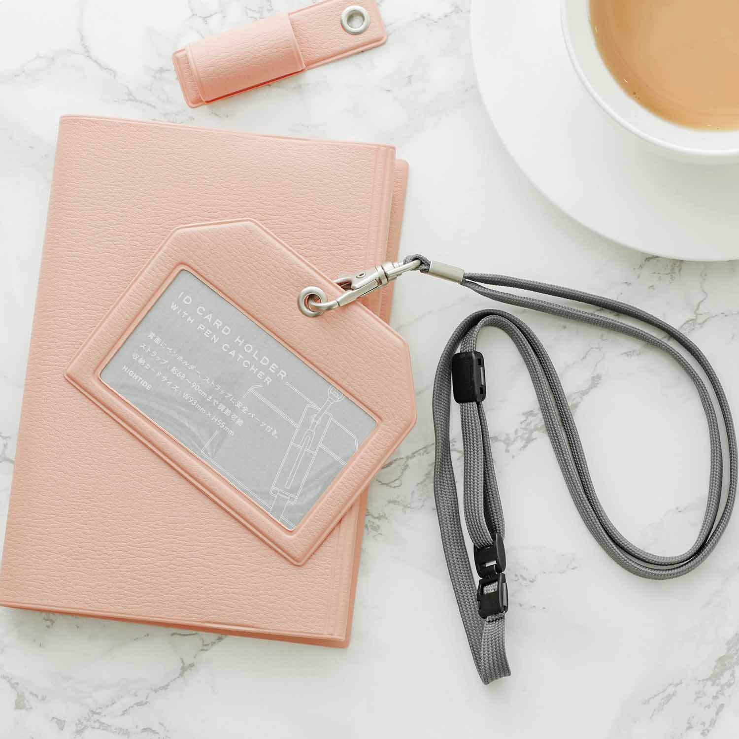 A soft leather-like ID badge holder with a detachable lanyard and pen insert by PASSEN.