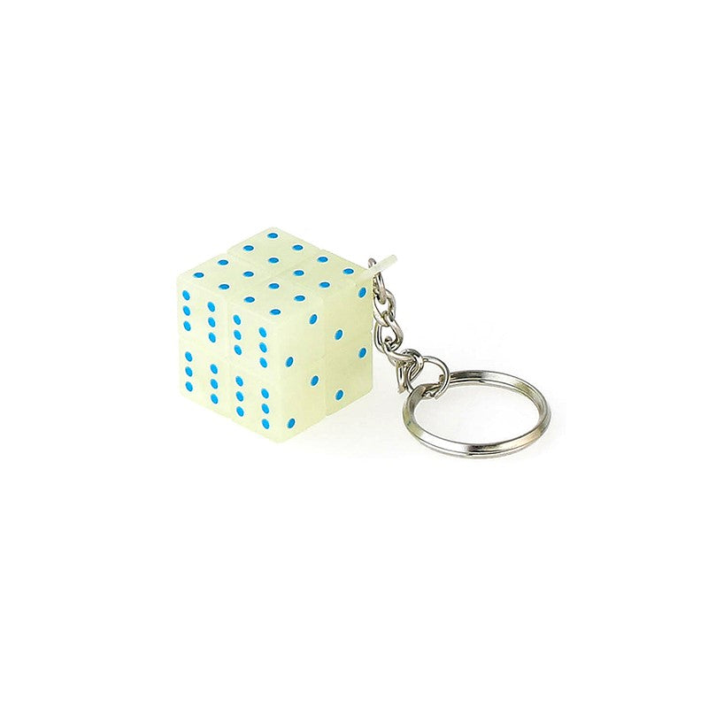 Dice keychain glows in the dark for safety and fun, in Magic Cube series.