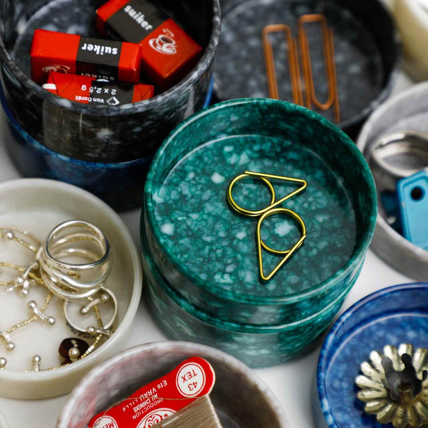 Stack or mix and match with other circular or rectangular trays to tidy up as well as showcase small accessories, paper clips, wrapped candies, cosmetics, and daily essentials like watches and keys.