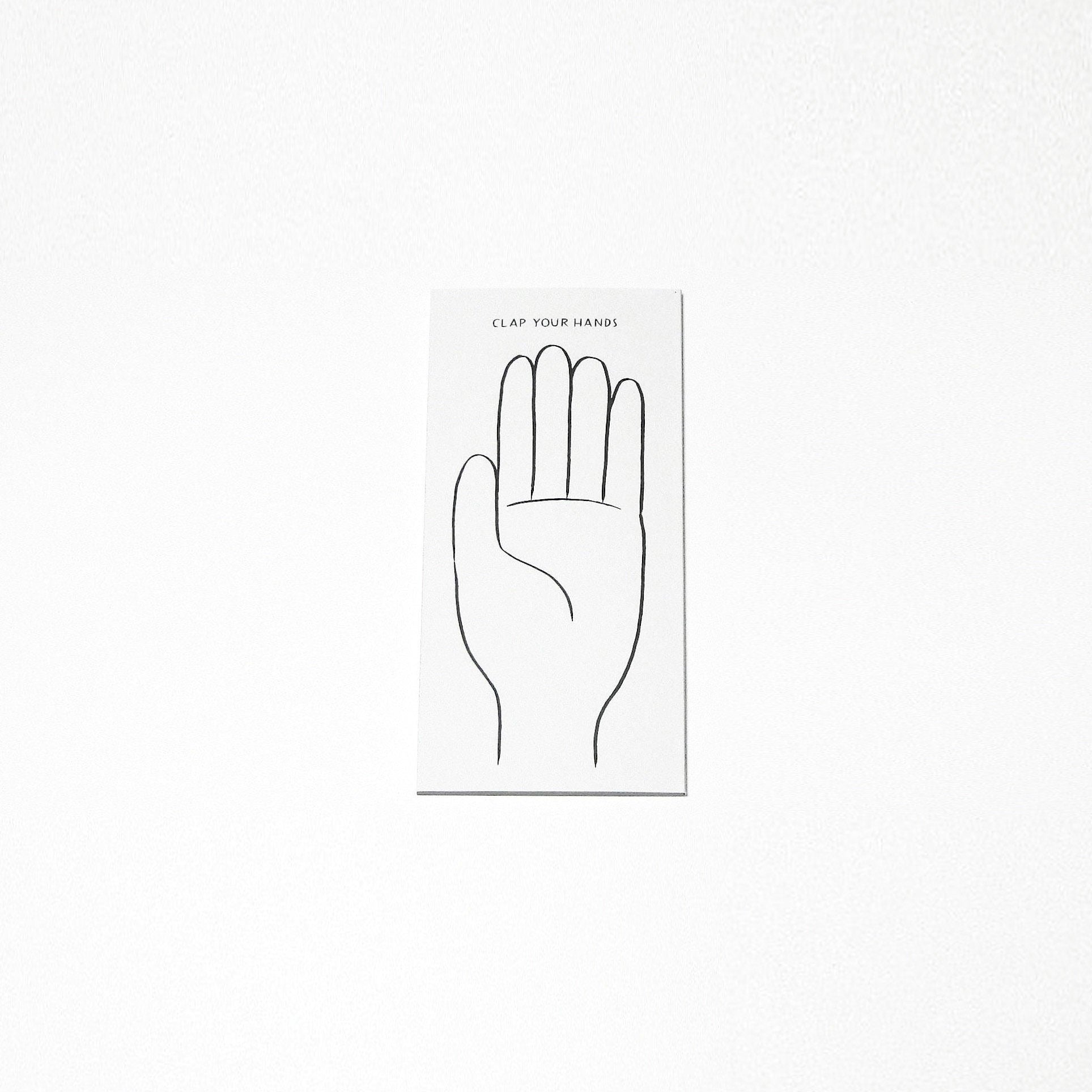 A flip through memo pad with a hand illustration on both front and back by Noritake.