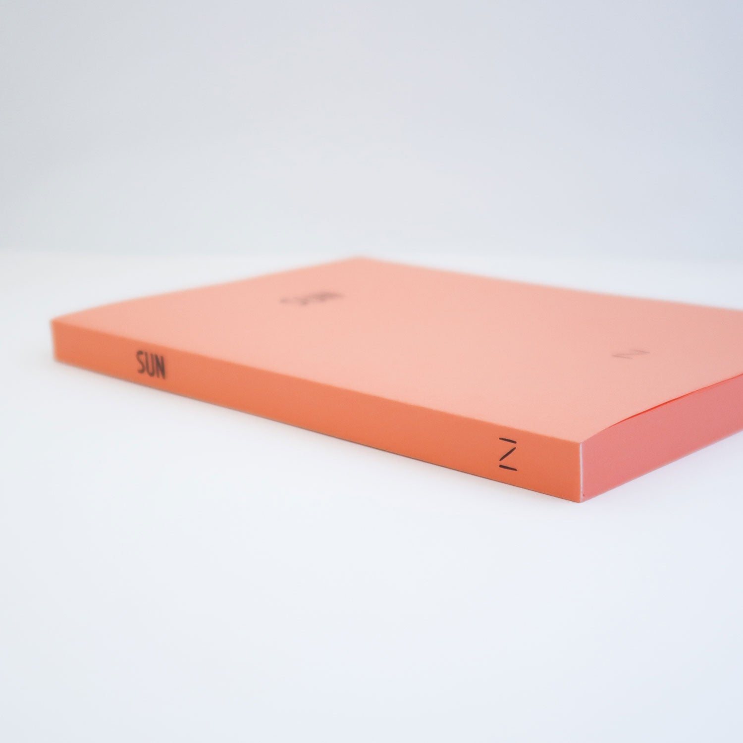 A soft cover notebook with blank orange pages, designed on the theme of sun by Noritake.
