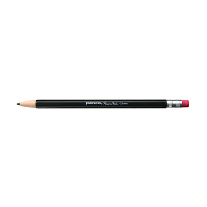 A mechanical pencil with an eraser that looks just like a regular pencil by Penco. Refillable with 0.5mm leads.