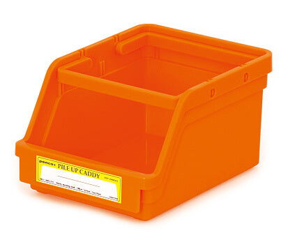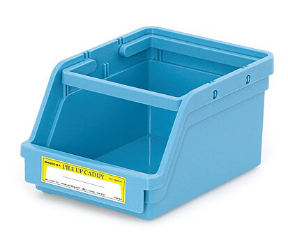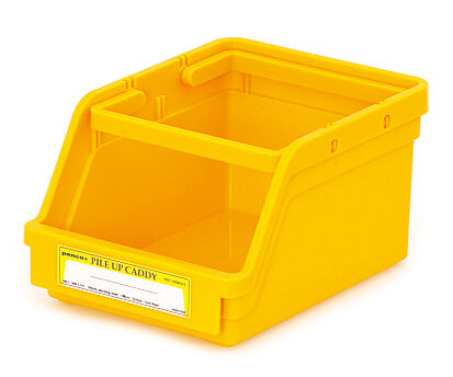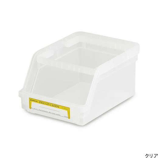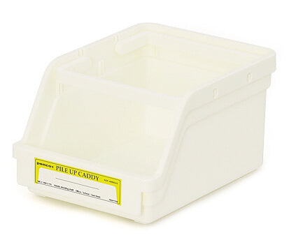 The wide openings lets you "pile up" small items for organizing in a snap. Foldable handles make it a portable caddy, as well as function as the base for stacking. The label sticker in front lets you jot down content category.