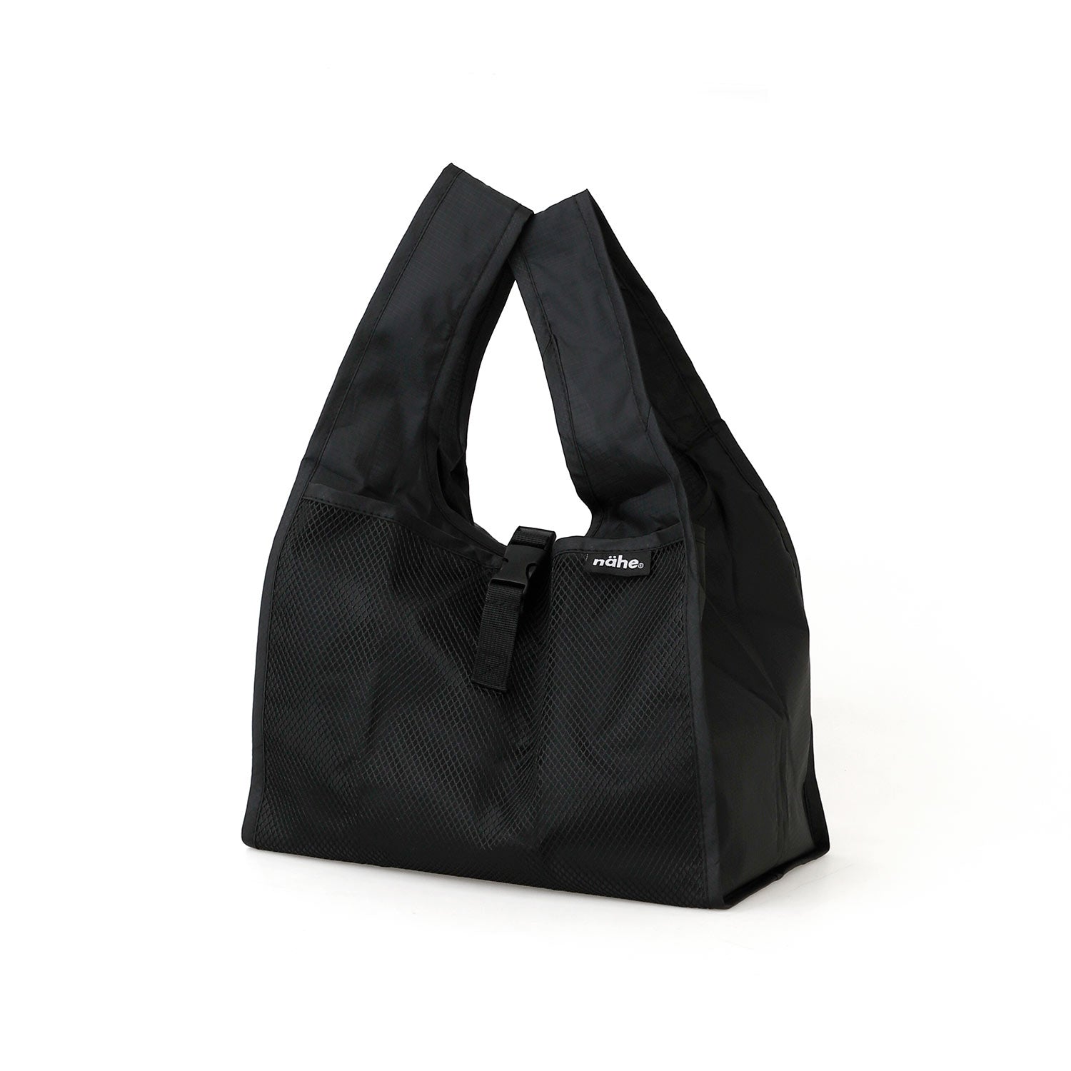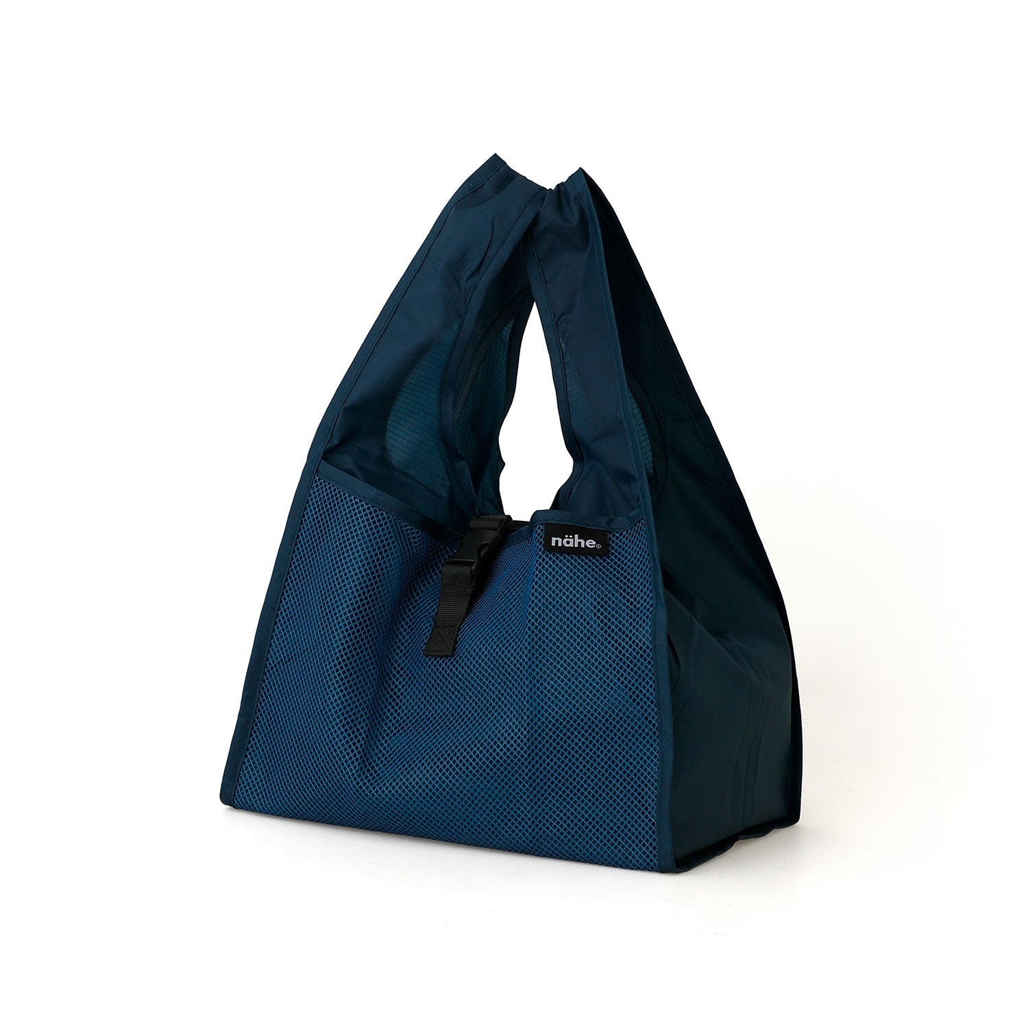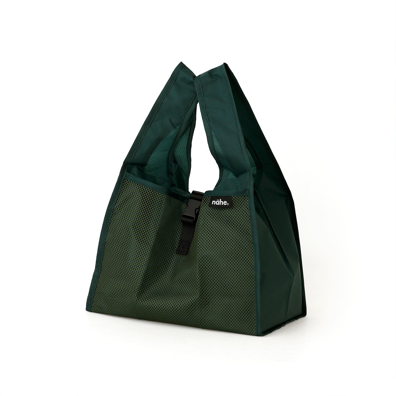 A functional polyester bag that folds up compactly with a buckle closure by Hightide in small. Eco-friendly and convenient choice for grocery shopping or traveling. The front mesh pocket can store wallets, phones or easy-to-reach items, to be separated from grocery food items. The small bag has an added gusset that is prefect for carrying lunch boxes. Neatly folds up into a palm-size with its attached buckle, which also acts as a bag closure.