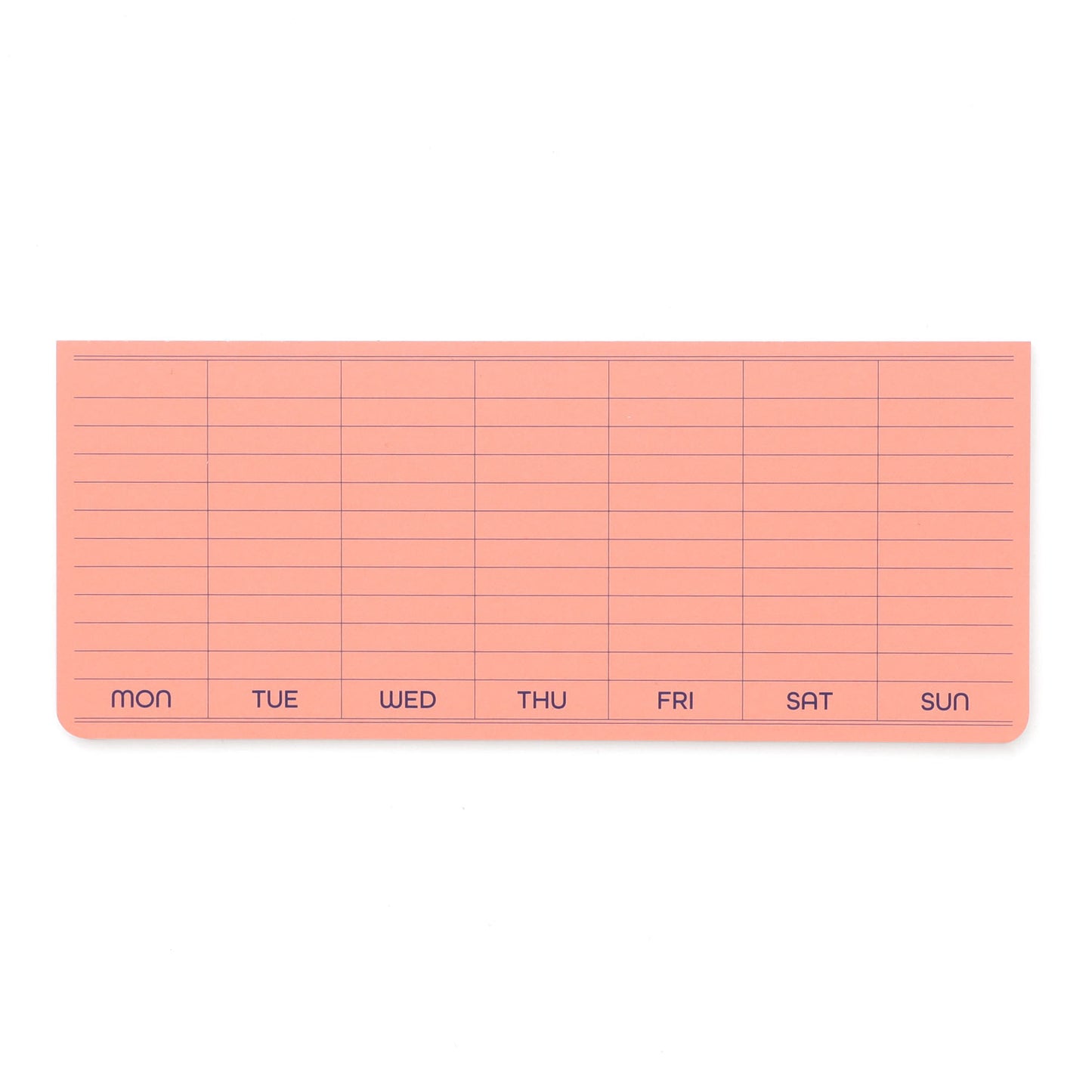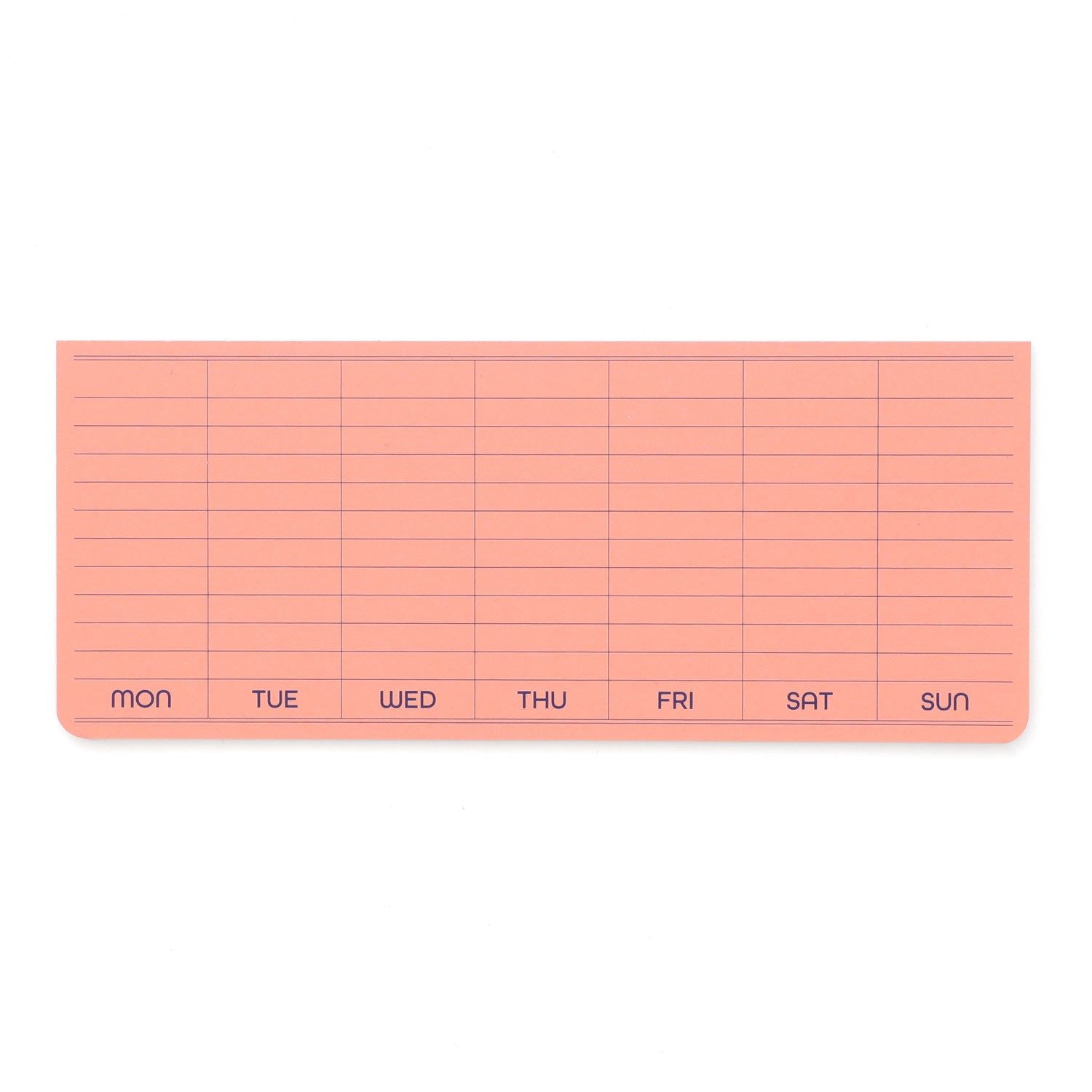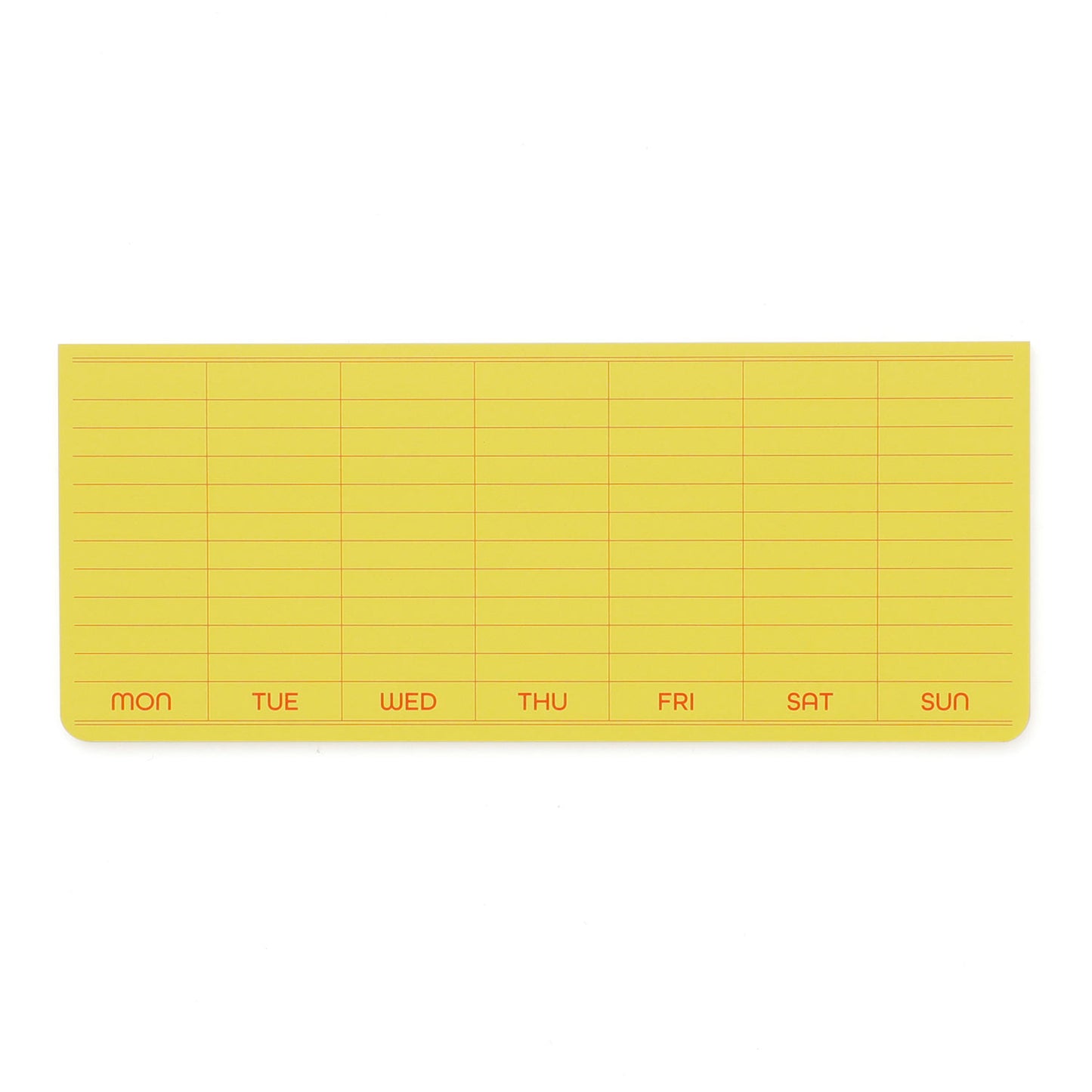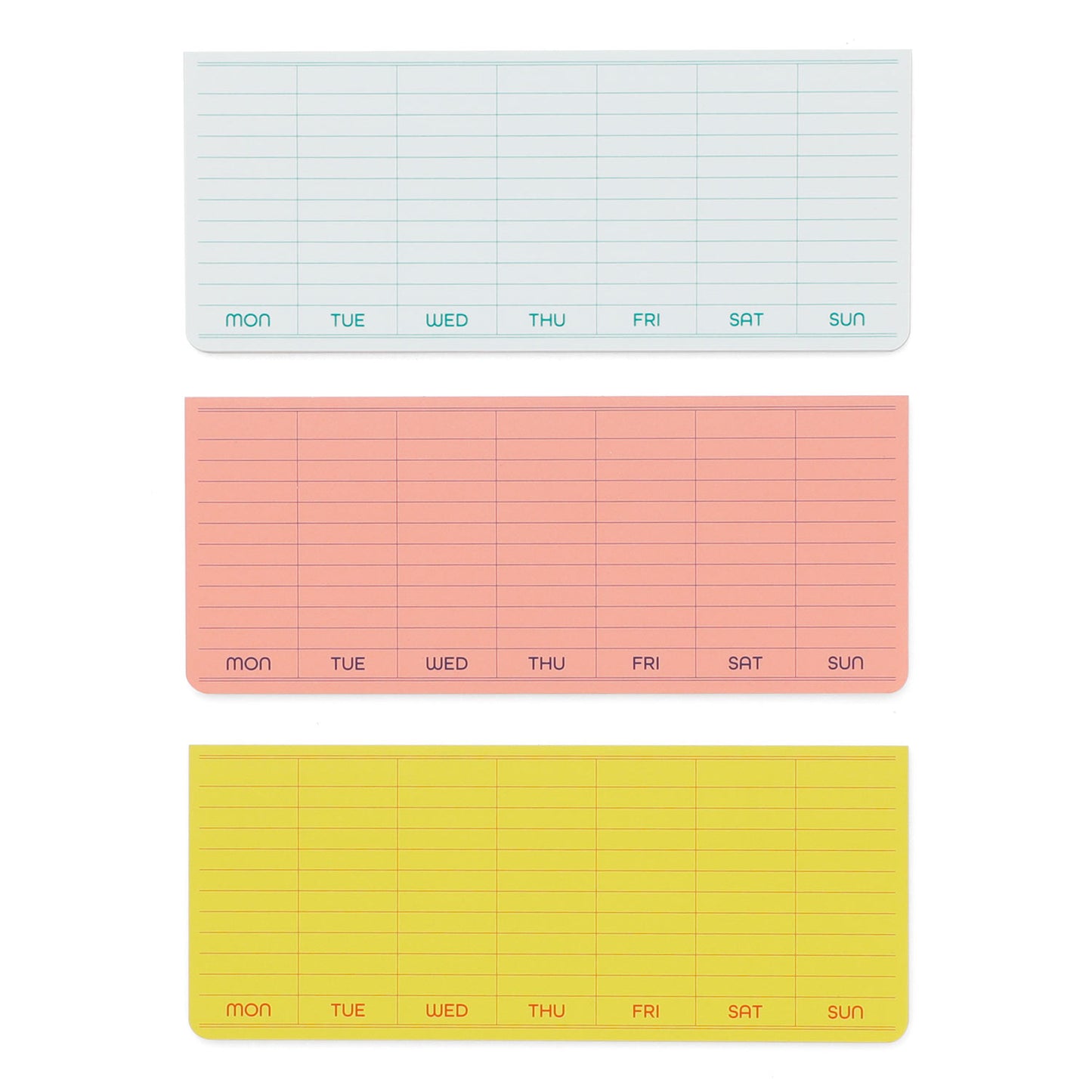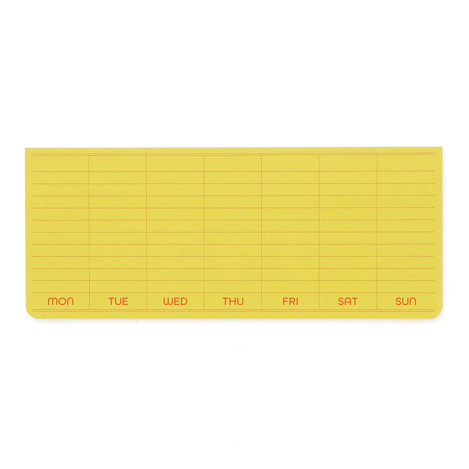 A sticky memo pad with guides to fill in weekly schedules by Penco. Comes in handy to jot down daily to-do lists or manage private/work schedules and display a weekly schedule at a glance. The memo easily attaches to your journal, desktop or high-traffic areas as a flexible scheduler and reminder. Each pad comes with 30 sheets.