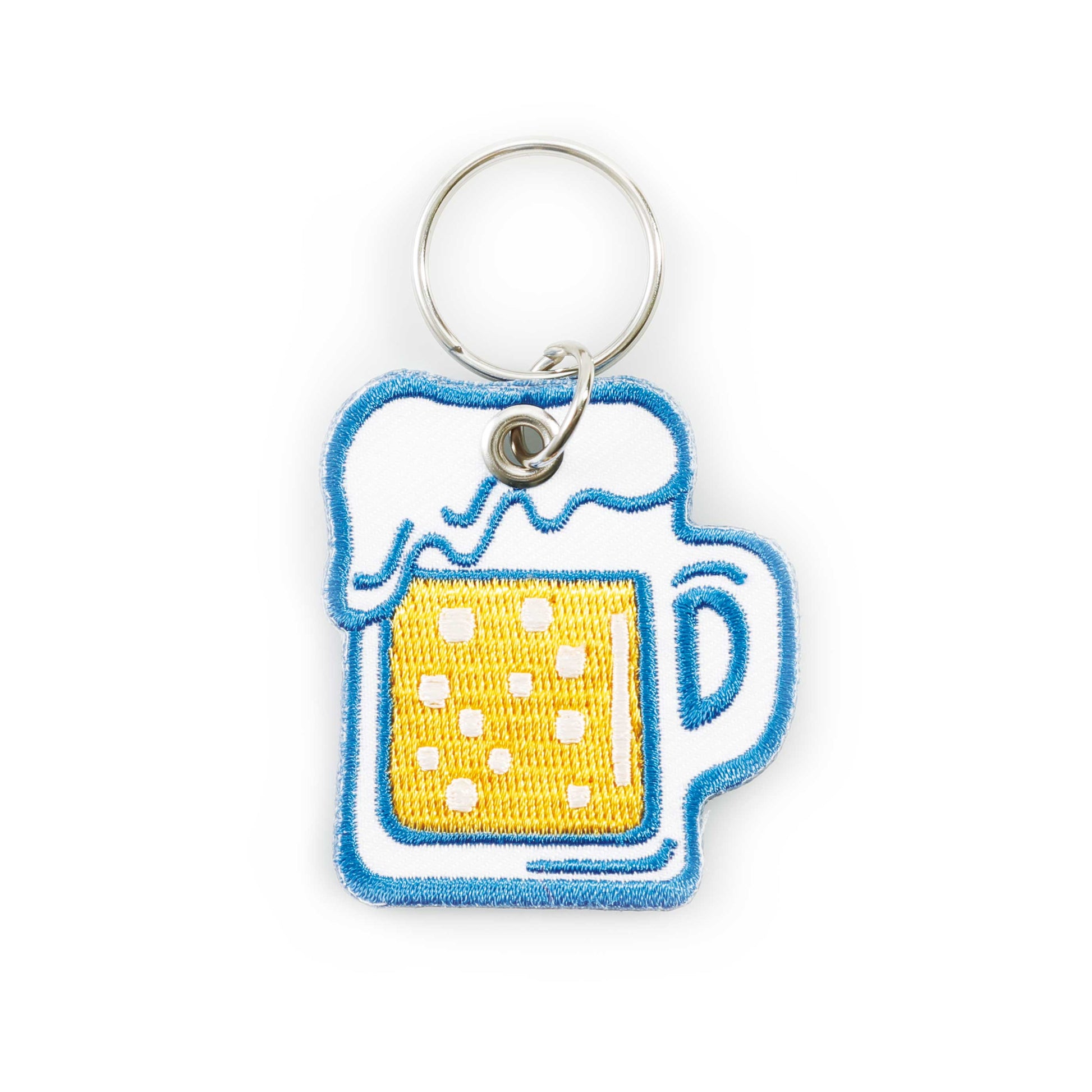 Embroidery keychain of retro and pop graphics.