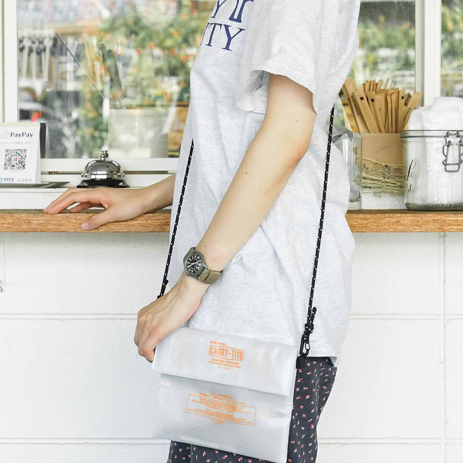 The cord can be worn around your neck or cross-body. Match it with Carry Tite Case Clear (Penco) to make a stylish sacoche or a shoulder bag.