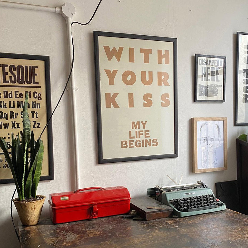 Poster reads: WITH YOUR KISS LIFE BEGINS (from the song "Wild Is The Wind" covered by Nina Simone, David Bowie and Cat Power)